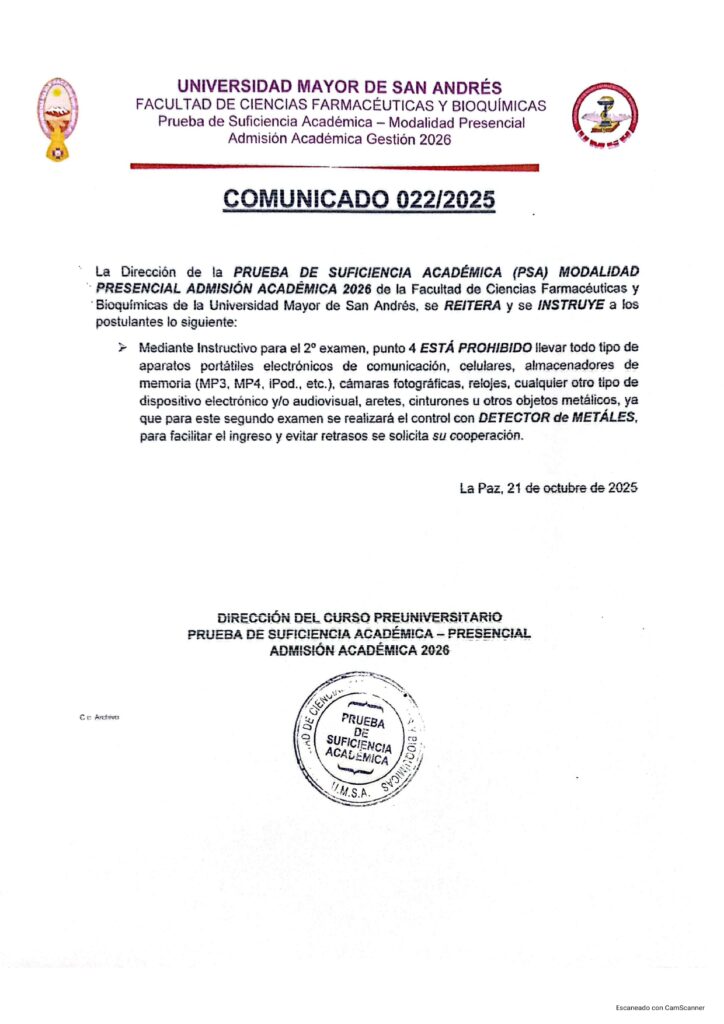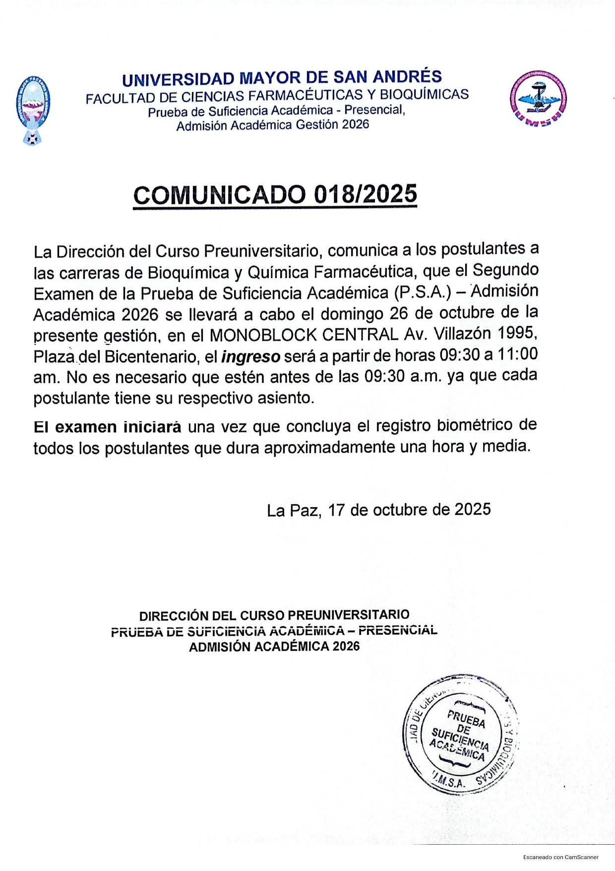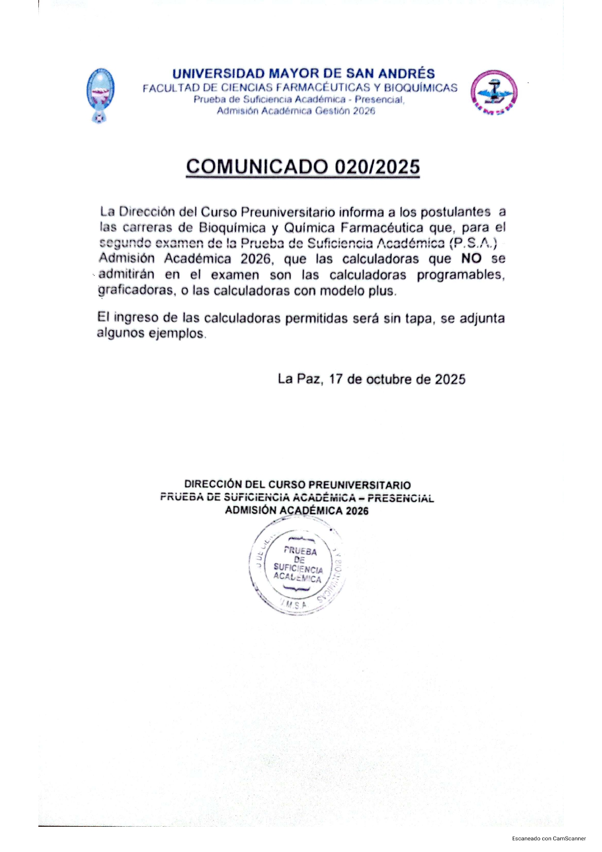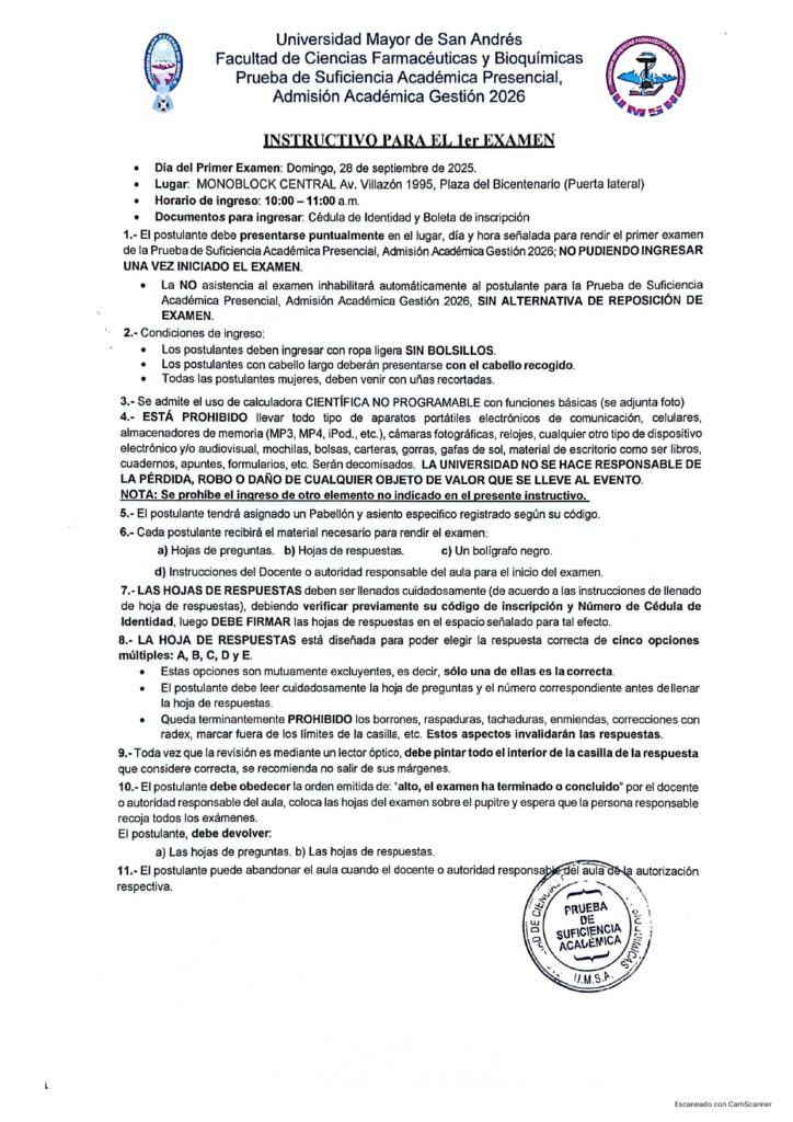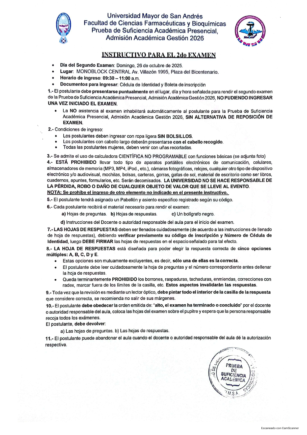 COMUNICADOS E INSTRUCTIVO 2DO EXAMEN